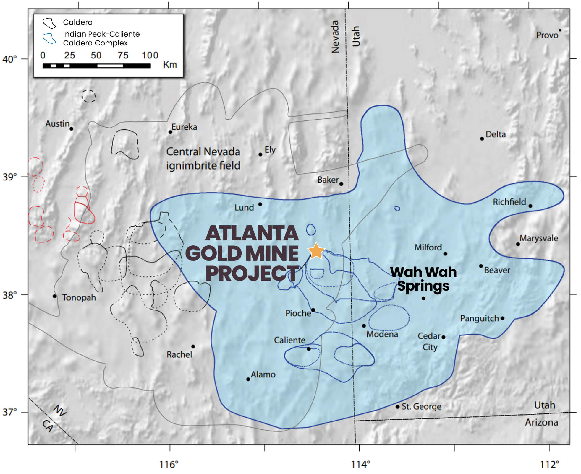 • Atlanta is located within the Indian Peak-Caliente caldera complex, one of the world’s largest supervolcanoes.