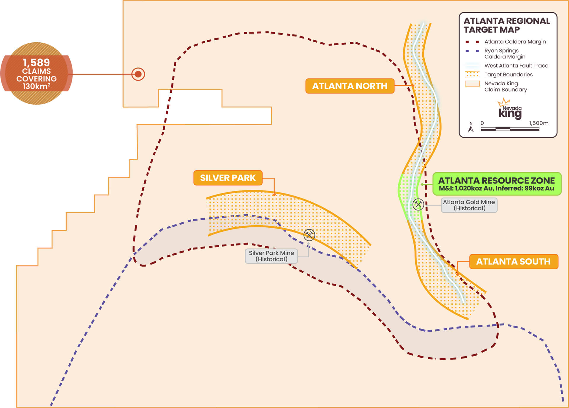 Nevada King purchased 100% of the Atlanta Gold Mine Project in 2018 and began exploratory drilling in 2021.